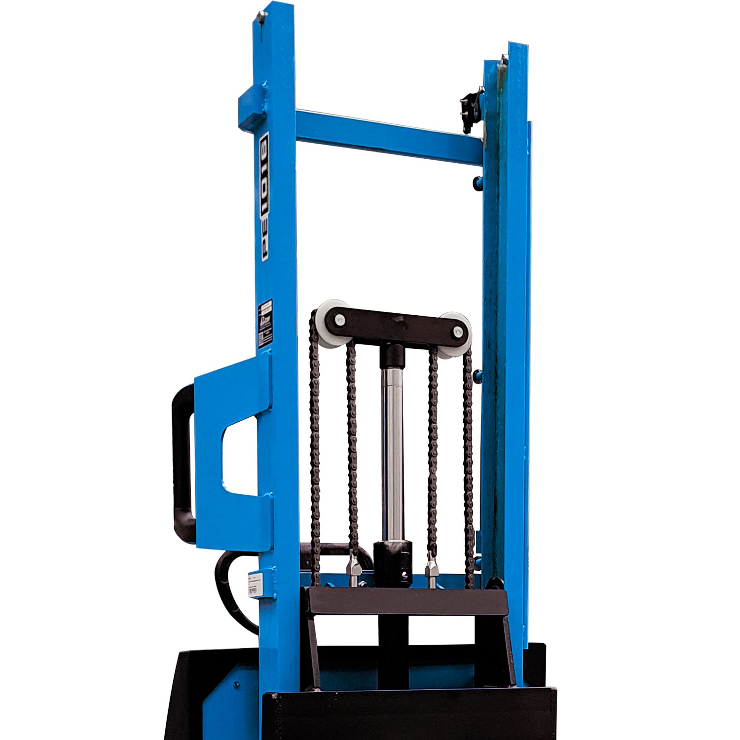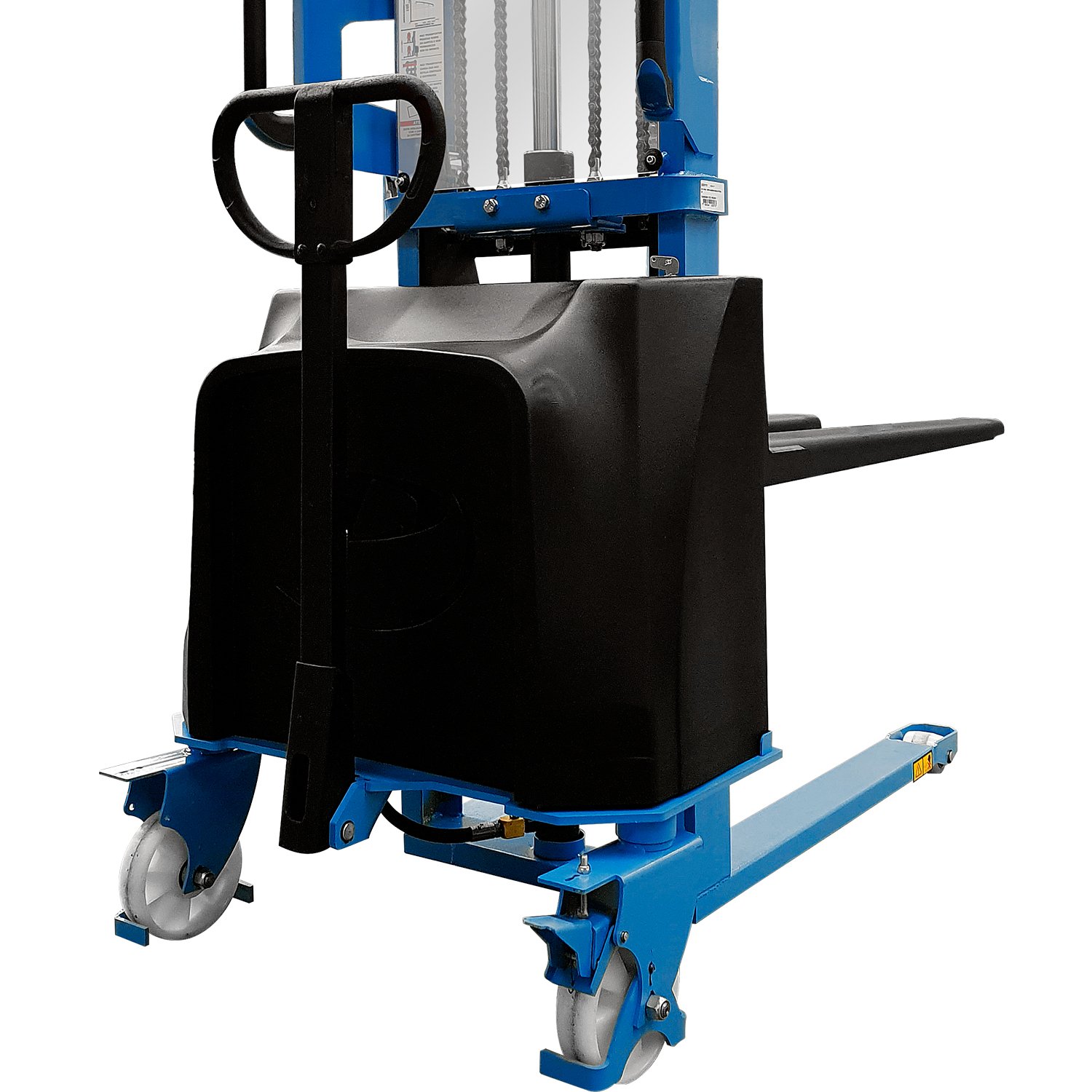 Empilhadeira Elétrica Manual, robusta, ideal para a movimentação vertical de cargas dispostas em paletes padrão. Funcionamento preciso na carga e descarga de pick-ups, caminhões e caminhonetes. A elevação elétrica permite maior conforto para o operador. Alimentação: CC – Corrente Contínua